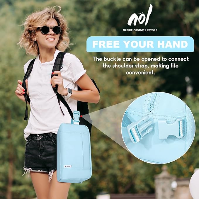 NOL Natural Organic Lifestyle Freezable Snack Bag, Leakproof Cooler Lunch Bag, Reusable, Zip Closure with Buckle Handle Nylon Waterproof Snack Box for Work Travel-Light blue