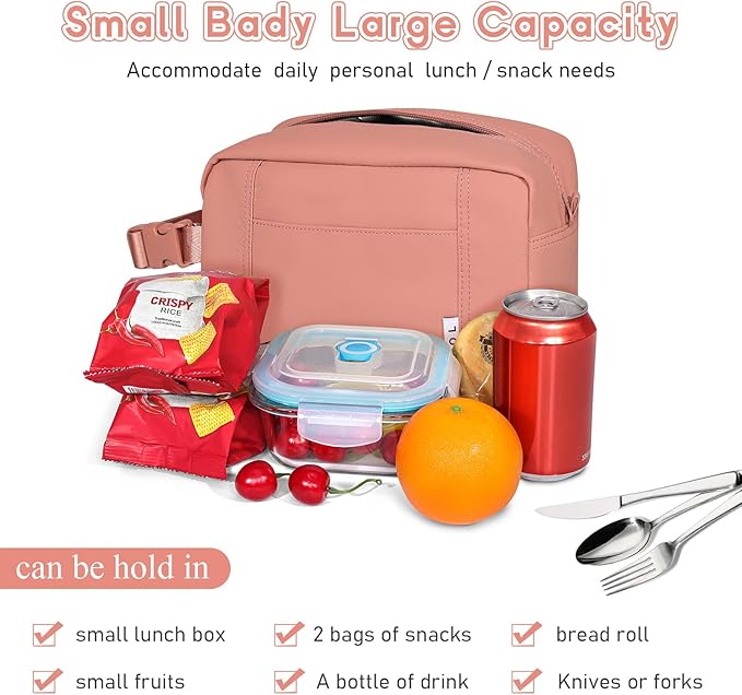 - Enough Capacity: The rectangular design gives the snack bag plenty of room for small containers or bottles. Perfect for healthy foods or items that need to be kept cold. The main compartment can put a lunch box+2 pack snacks+one orange+330ml drink+a pack of bread in this bag. Outside 1 insert pocket in the front of the bag for small essentials. This bag can meet your daily needs on the go.