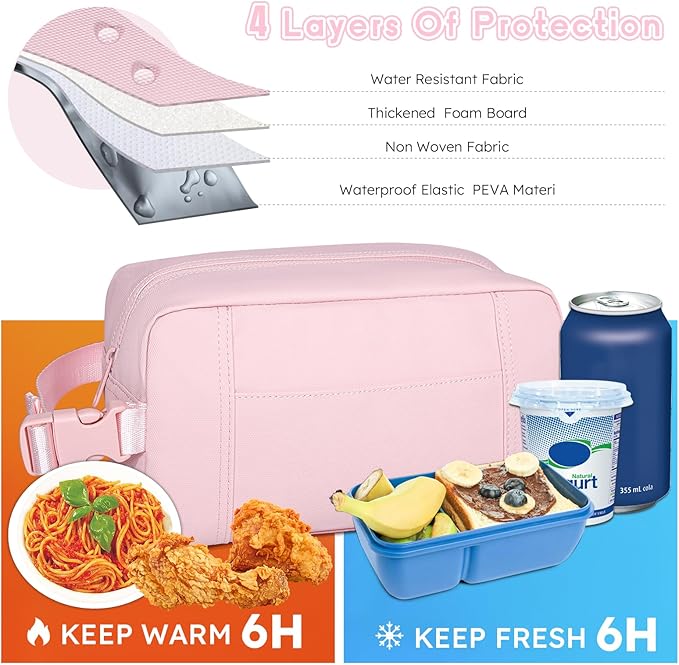 - Enough Capacity: The rectangular design gives the snack bag plenty of room for small containers or bottles. Perfect for healthy foods or items that need to be kept cold. The main compartment can put a lunch box+2 pack snacks+one orange+330ml drink+a pack of bread in this bag. Outside 1 insert pocket in the front of the bag for small essentials. This bag can meet your daily needs on the go.