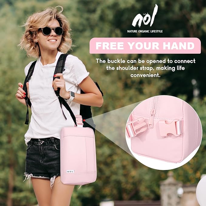 NOL Natural Organic Lifestyle Freezable Snack Bag, Leakproof Cooler Lunch Bag, Reusable, Zip Closure with Buckle Handle Nylon Waterproof Snack Box for Work Travel-Pink