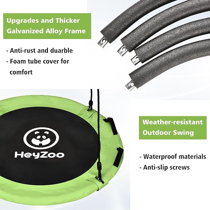 - 48 Inch Super Large: Compared to most saucer swings, Heyzoo 48 inch swing is more suitable for multi-child families. It can easily carry 3-4 children or adults and children playing together, allowing the whole family to enjoy fun times.