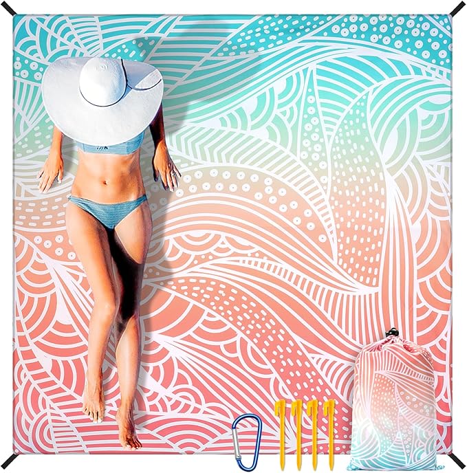 - 【Sandproof & Waterproof】The nylon beach mat is waterproof and sand-proof,machine washable and quick drying.