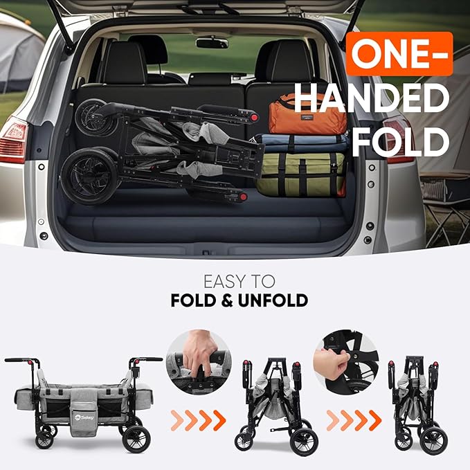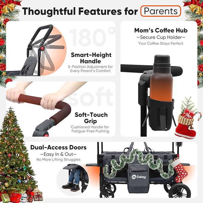 Sekey Wagon Stroller for 2 Kids, Luxury 4-in-1 Stroller Wagon - Premium Quality with Convertible Seats, Adjustable Push Handles, Removable Canopy, Snack Tray & Cooler, US Certified
