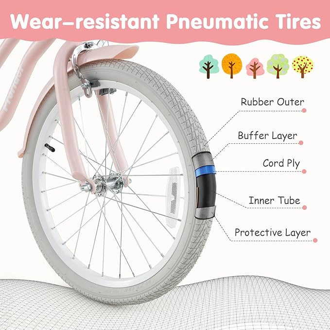 - [ Specially Designed for Young Riders ]: This kid’s bicycle comes with sturdy carbon steel frame which provides longer service life. The PP covered seat improves the overall comfort when your kids is riding. The wear-resistant pneumatic tires are made of multi-layer materials: rubber outer, buffer layer, cord ply, inner tube and protective layer, offering a safe and steady riding experience.