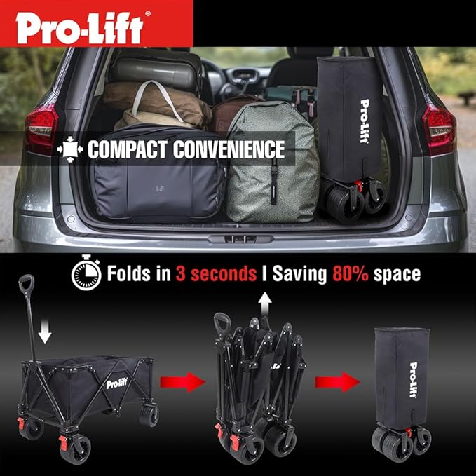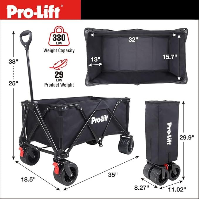 Pro-Lift Collapsible Folding Wagon– Beach Cart Large Capacity, Heavy Duty Folding Wagon Portable, for Outdoor Sports, Grocery, Camping, Shopping, Garden, Sports, Load up to 330LBS