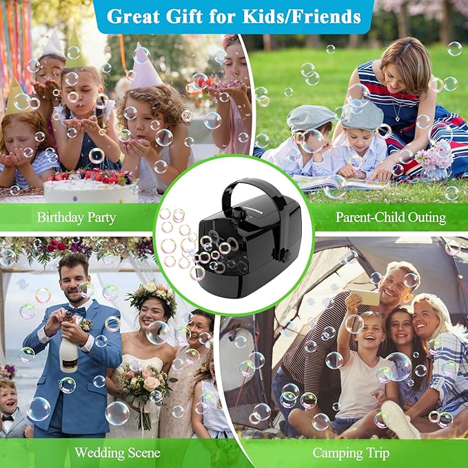 - 【Great Gift for Kids & Friends】Bubble Machine for Toddlers is Definitely Perfect Toys and Great Gifts. Flying Tons of Colorful Bubbles Bring A Dreamy Atmosphere to A Series of Events, Such as Birthday, Party, Parent-child Outing, Wedding, Family Gathering, Yard BBQ and More