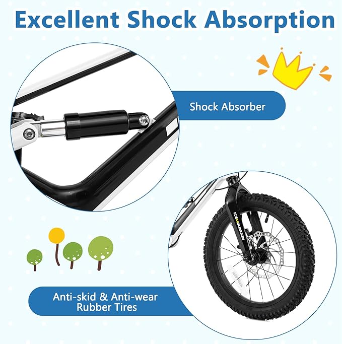 - [ Designed for New Riders ]: Equipped with detachable training wheels, this 16-inch bicycle is perfect for beginners learning to ride. The anti-skid & anti-wear rubber tires provide better grip and resilience on varied terrains. Moreover, the addition of a shock absorber offers enhanced control for smooth rides.