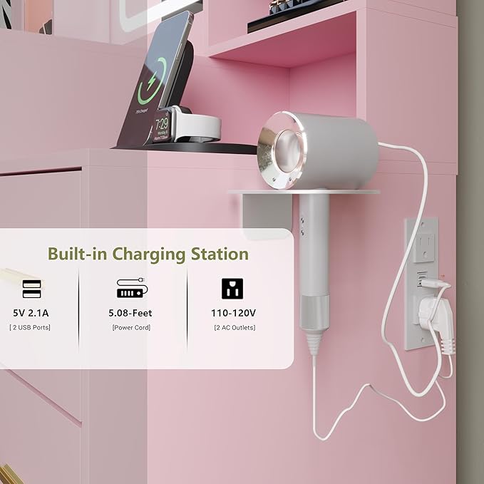 - Elegant and Functional Design: The modern design of this pink vanity blends style with practicality. It’s a perfect addition to any bedroom or dressing room, designed to serve as a vanity desk with mirror and lights. Ideal for women, teens, and anyone seeking a touch of sophistication in their space.