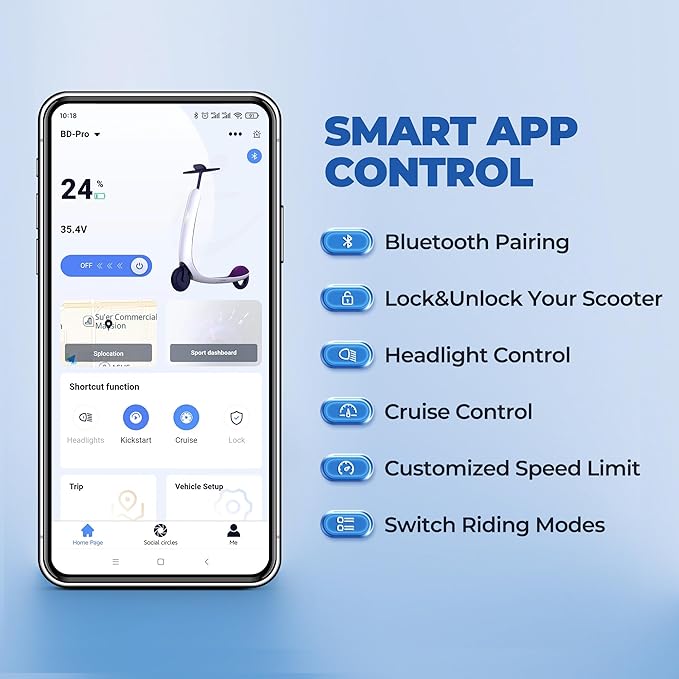 - đź›´Vicont App Control: Easily control your electric scooter via app Vicont. Unlock more function via this APP, Lock/unlcok; set up customized max speed; cruise control, zero start, gear mode, battery and time monitoring, fault detection system, etc.