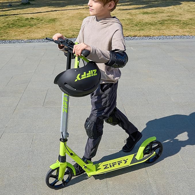 ZIFFY Scooter for Kids with Hand Brake, Foldable Kick Scooter for Ages 6-12, Lightweight Scooter for Boys with 4 Adjustable Heights, ABEC9 Bearings, Supports Up to 260 lbs by Jova