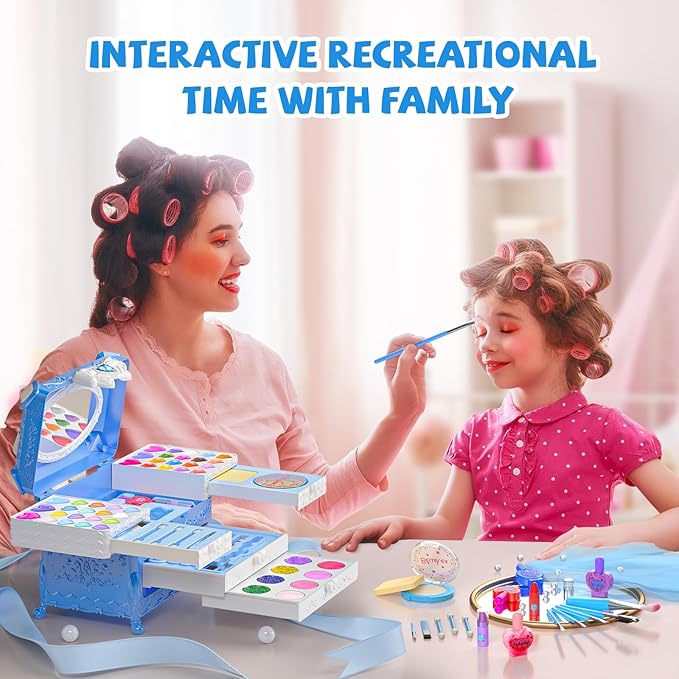 - 【Have Fun With Makeup】Comes with a cosmetic box, this kids makeup set features rich combinations and dreamy colours to fulfil the dream of every little princess! Role-playing with their partners to meet the kid's desire to explore