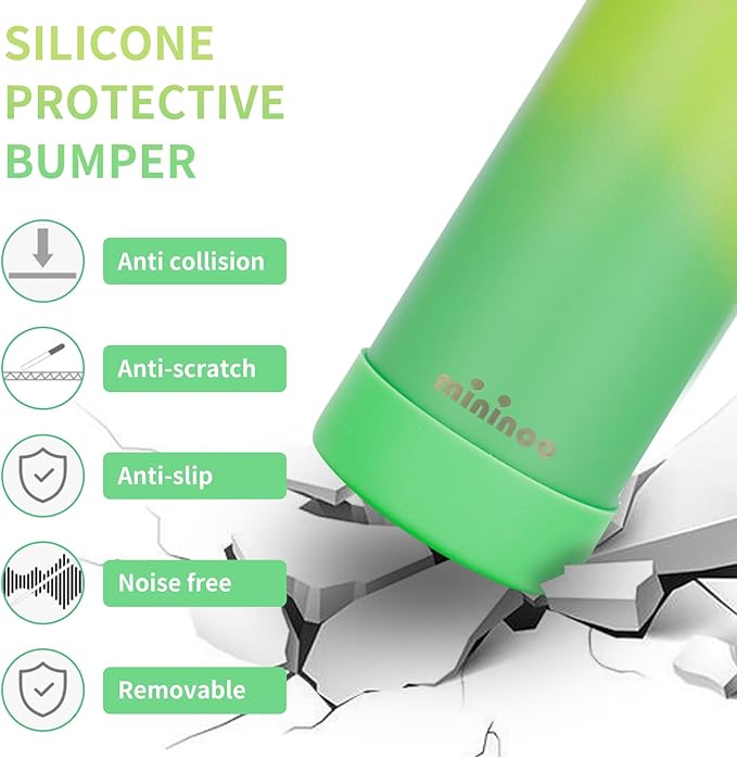- Protection From Scratches And Wear And Tear - We provide high quality non-slip silicone cover to prevent scratches and dents on the bottom of the kids water bottle stainless steel from accidental drops, prolonging its lifespan, yet protecting your furniture from scratches. The silicone boot is easy to install and can be removed for cleaning.