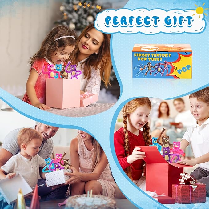 - Perfect for kids’ halloween gifts or classroom prizes, these bear pop tube offer hours of fidgeting fun and a satisfying sensory experience. It is also one of the best gifts for ADD, ADHD, and Autism.