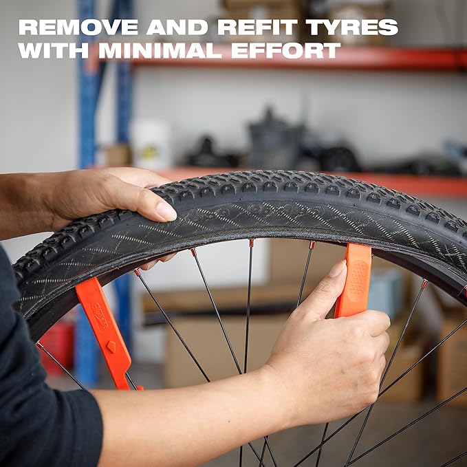 - 【VERSATILE APPLICATION】- The Tyre Lever set works for all tires widths and cycling disciplines, including mountain bikes, road bikes, gravel bikes and more. The tire spoons is a hand-held heavy duty tool that changes a tires in seconds, rather than minutes - making removal of bicycle tires a breeze!