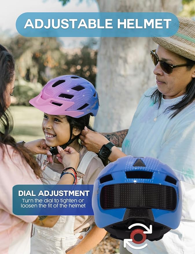 - Toddler Bike Helmet with LED Display: The standout feature of this kids' helmet is the LED signal system, which provides clear road signals, including left and right turns, as well as STOP alerts. This enhances safety by eliminating the need for kids to signal with their hands while riding. The bright LED lights ensure that the child's intentions are highly visible, increasing their visibility to others on the road.