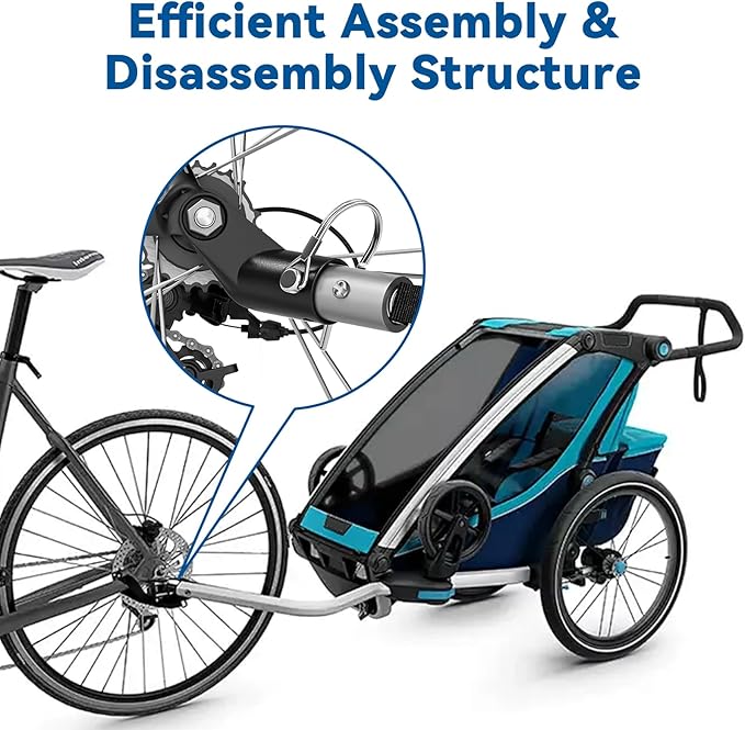- Easy To Install: The diameter of the hole connected to the bicycle is 1/2 inch, and the outer diameter of the part connected to the axle is 1 inch. The diameter of the hole on the trailer is 1 inch. After installation, it requires the strength of an adult to open the connecting pin, which is the safest for children