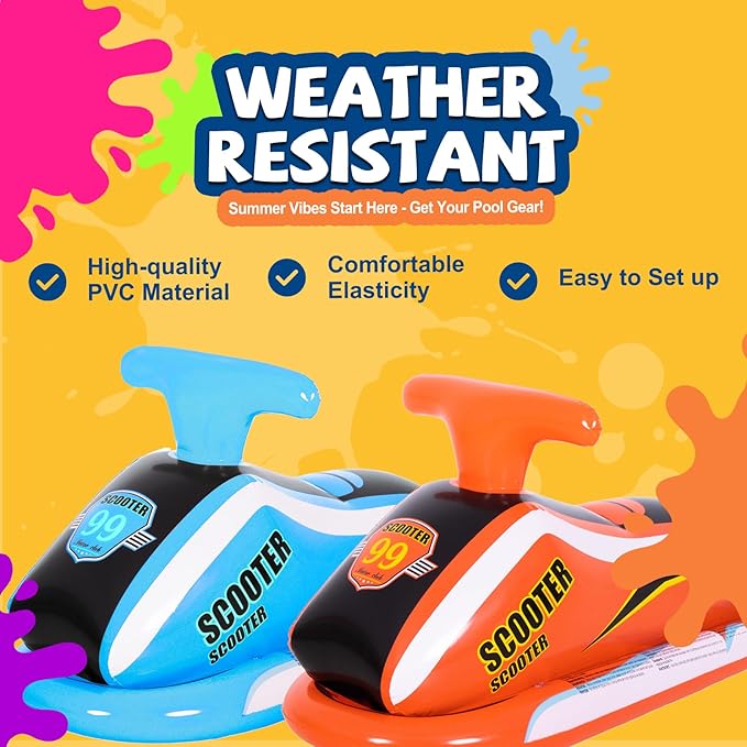 - Fun Scooter Rider Design: The inflatable pool float features a playful rider design, perfect for sparking your child's imagination and making pool time even more exciting. Bright colors and fun details ensure that your little one will love flying around the pool.