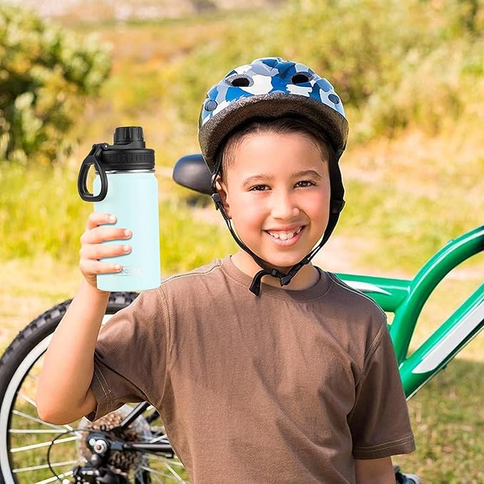 koodee Small Water Bottle 12 oz Stainless Steel Vacuum Insulated Wide Mouth Water Bottle with Leakproof Spout Lid (Bby Blue)