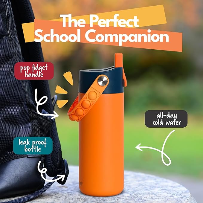 - ๐ฃ๐ผ๐ฝ-๐๐ ๐๐ฎ๐ป๐ฑ๐น๐ฒ ๐๐ฎ๐ฟ๐ฟ๐ ๐๐ ๐ง๐ต๐ฒ๐ถ๐ฟ ๐ช๐ฎ๐: The flexible Pop-It strap handle lets kids carry, clip, or hang the bottle with ease. It doubles as a built-in fidget feature, making hydration fun and hands-on. Light enough for little ones but strong enough for daily use, this stainless steel kids water bottle empowers independence from the classroom to the playground.
