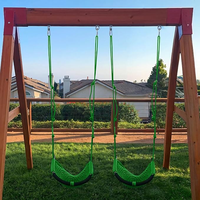 - 【Super fun indoor outdoor play】Kids and friends can enjoy this green rope swing seat or replacement swing set accessory parts on the kids’ room,easy to create a children's exclusive park anytime;In addition to this rope swing set not only suitable indoor,but also outdoor such as backyard,garden,playground,park,doorway and so on,a perfect DIY swing seat