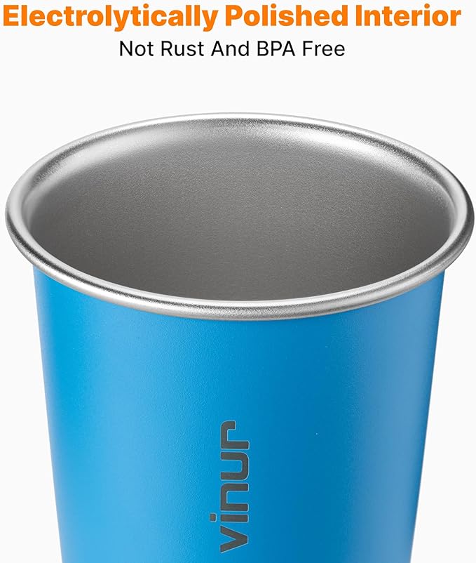 - EASY TO CLEAN: Stainless Steel pint cup are treated with electrolytic polishing technology on the inside, the interior is smooth and bright, easier to clean than brushed interior, won't hide dirt in the crevices, providing you with a clean drink every day.