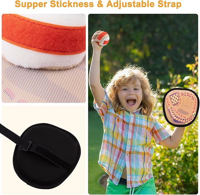 Toss and Catch Ball Set Toddler Baseball Training Glove, Pool Beach Toys for Kids 3 4 5 6 7 8 Years Old Boys Girls Birthday Gifts, Soft Sticky Balls Yard Outdoor Games for for Adults Family