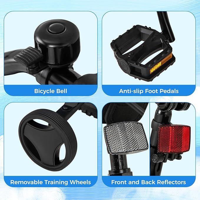 - [ Ideal Riding Gift for Beginners ]: The 95% pre-assembled kids bike comes with all the needed tools for quick installation, enabling your little one to ride immediately. 2 removable training wheels help beginners keep balance and pedal independently.