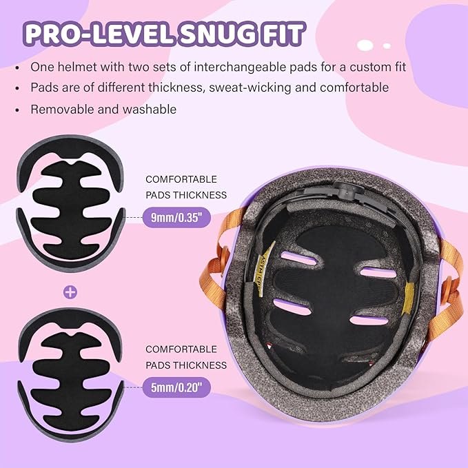 - 【PERFECT FIT & ADJUSTMENT】 Two sets of removable, moisture-wicking pads in two different thicknesses. Use them individually or combine them to customize a cozy fit. The back of the helmet equips with built-in dial fit system, making the helmet fit your head exactly