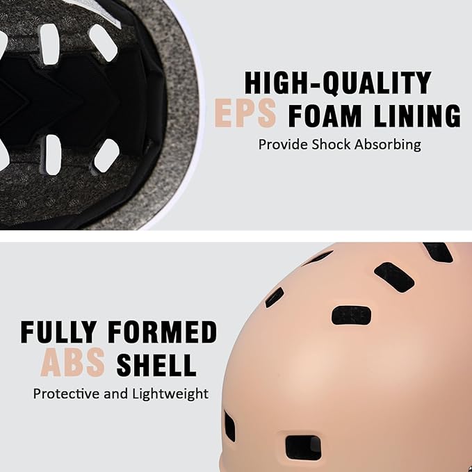 - The kids bicycle helmet is made of rugged ABS shell and shock-absorbing EPS foam to provide comprehensive protection.
