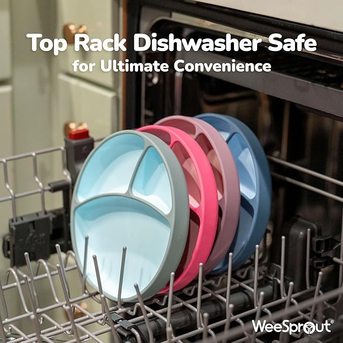 - EASY CLEANING, EVERY TIME: Made for busy parents, these silicone baby plates are top-rack dishwasher safe, saving you time and effort. The silicone material resists stains and odors, keeping the plate looking new meal after meal.