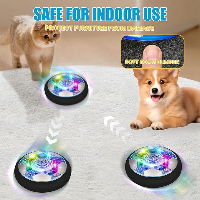 - Safe Design to Protect Furniture: Made from high-quality, non-toxic materials, our hover soccer ball is safe for children. The soft foam bumpers ensure that furniture and walls are protected from collisions and damage, allowing kids to play worry-free.