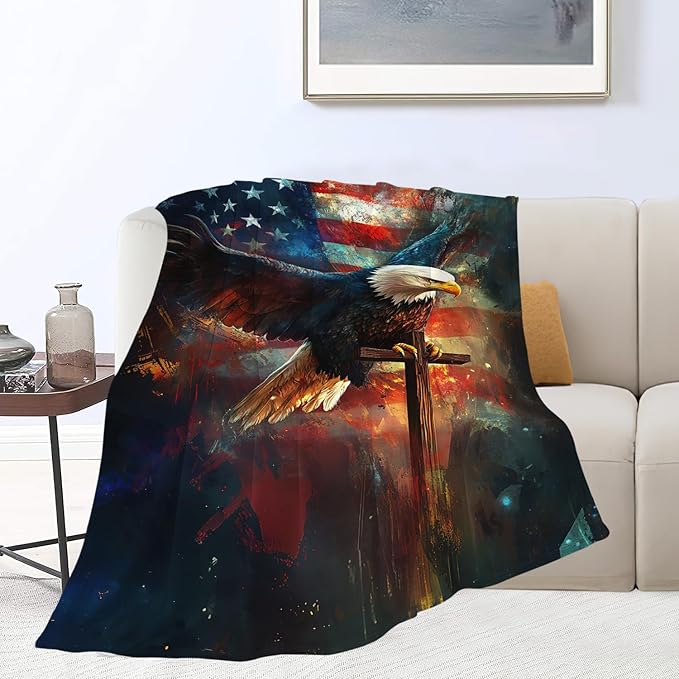 Bald Eagle Blanket American Flag Eagle Throw Blanket Gifts for Men Women Boys Girls Kids Adults Super Soft Cozy Plush Fluffy Fuzzy Fleece Blanket Home Decor 60''X80''