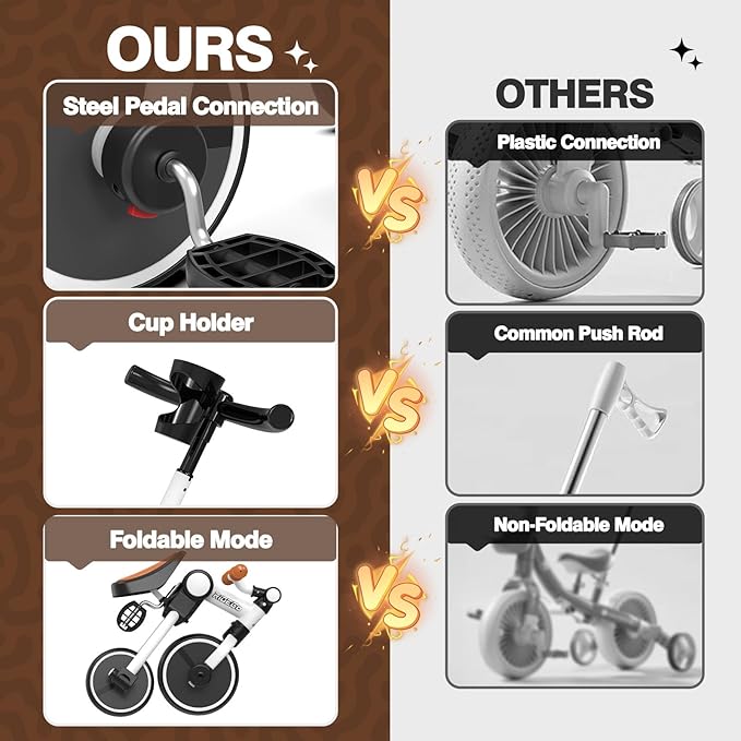 - 【SAFE & STURDY DESIGN】 Reinforced carbon steel frame supports up to 110 lbs. EVA wheels ensure quiet, shock-absorbing rides indoors and outdoors. This durable kids tricycle is safe and reliable, also popular among toddler bikes 1–3 years.