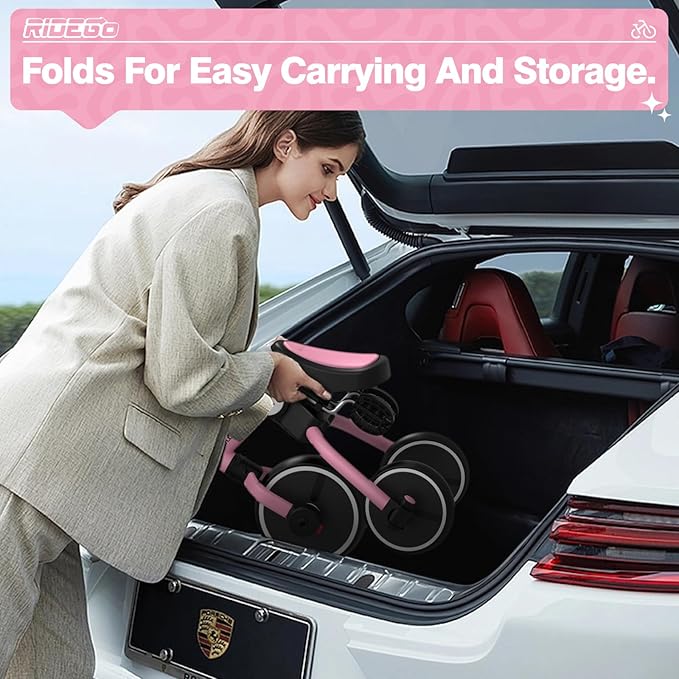 Ridego 5 in 1 Tricycle for Toddlers 3-5 Years Old,Foldable Toddler Bike with Push Handle and Cup Holder, Ideal Balance Bike and Birthday Gifts for 2 3 4 5 Year Old Boys Girls,Pink