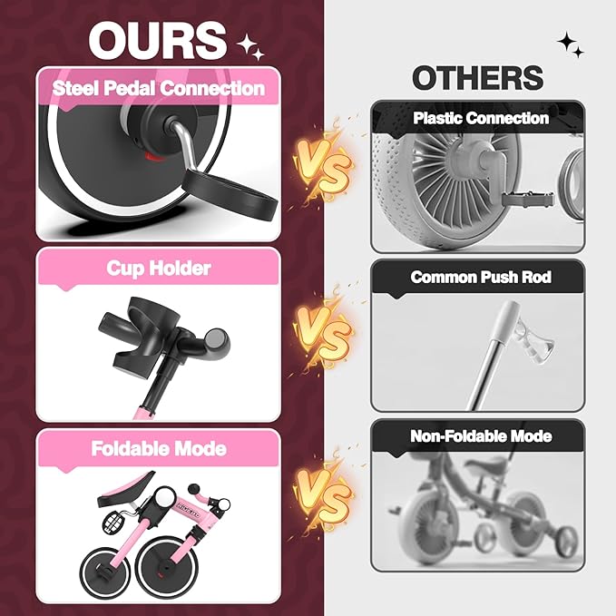 - 【SAFE & STURDY DESIGN】 Reinforced carbon steel frame supports up to 110 lbs. EVA wheels ensure quiet, shock-absorbing rides indoors and outdoors. This durable kids tricycle is safe and reliable, also popular among toddler bikes 1–3 years.