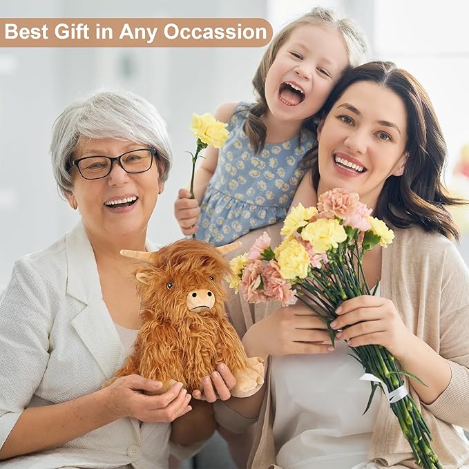 - Engaging and Lovable: Embark on a journey with this higland cow plushies! This stuffed highland cow for discomfott offer children a comforting sense of security and foster emotional growth and resilience, definitely the best highland cattle when playing, napping, soothing boo boos, reading, bedtime or traveling! Also a great highland cow decor in boy & girl's bedroom
