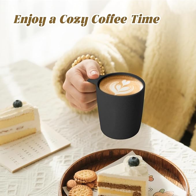 Homienly Wheat Straw Coffee Mugs 6 PCS, Alternative to Plastic Mugs with Handles, Unbreakable Coffee Mugs, Reusable Camping Mug Drinking Cups Set, Microwave and Dishwasher Safe Cups for Kitchen(Black)