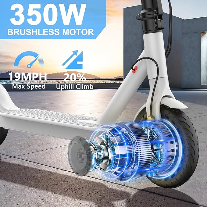 - 350W MOTOR( Peak 700W)--High power brushless motor, peak power 700W, provides a maximum speed of 19 MPH, load capacity of the escooter electric for adults is 265 lbs, 20% uphill climb keep you motivated when going uphill.