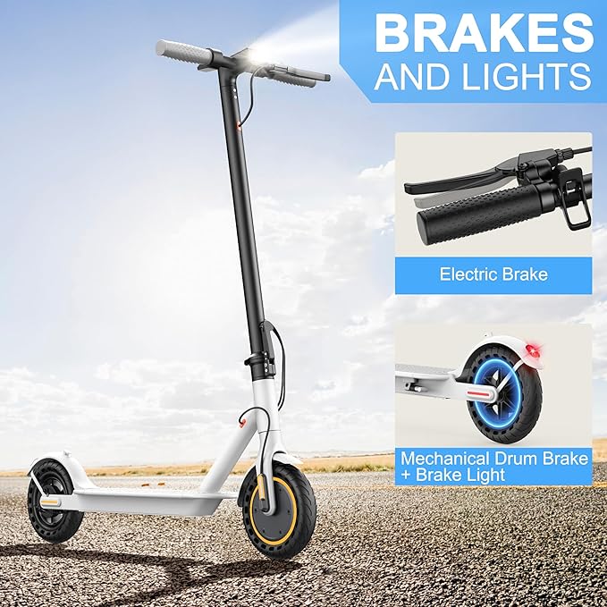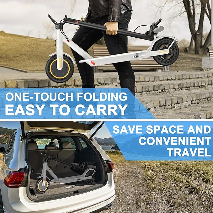 - 8.5 INCH LARGE TIRES--Large wheels enhance vibration filtering, adult scooter electric equipped with 8.5 inch honeycomb Solid Tire, no need to maintenance,repair,The most important is that you don't need to worry about the tire being punctured, saving the cost of tire maintenance.