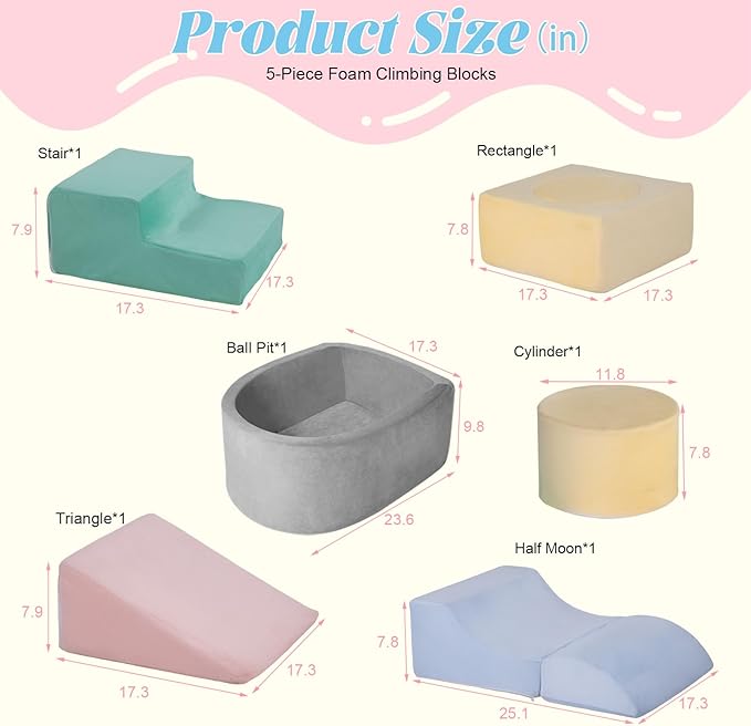 - 【Safe&Fun to Play】: Our foam climbing blocks with an integrated ball pit ( balls not included) are crafted from premium foam material, ensuring a secure and enjoyable playtime experience. The zippers are designed to protect delicate skin from scratches, providing peace of mind to parents and a sense of security for children. Engineered without harsh edges or solid structures, these foam blocks safeguard toddlers from accidents, allowing them to play, toddle, and roll freely.