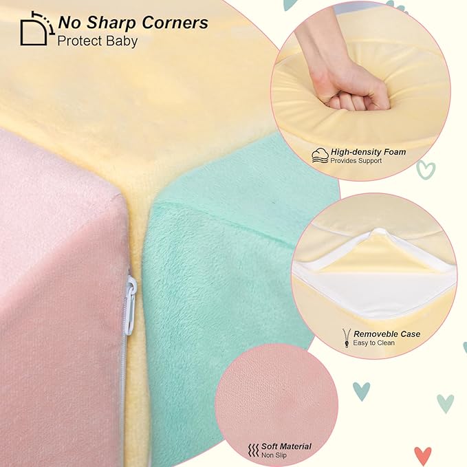 - 【High-quality& Comfortable Fabric】: The Climbing blocks features removable& washable fabric cover adds convenience and versatility to the product. Parents can easily remove and wash the durable fabric cover, keeping the climbing toys looking fresh and vibrant, ensuring a hygienic play environment for their little ones.This soft texture offers a nice touch sense, delivering a blend of practicality and aesthetic appeal to our kids' fun toys.