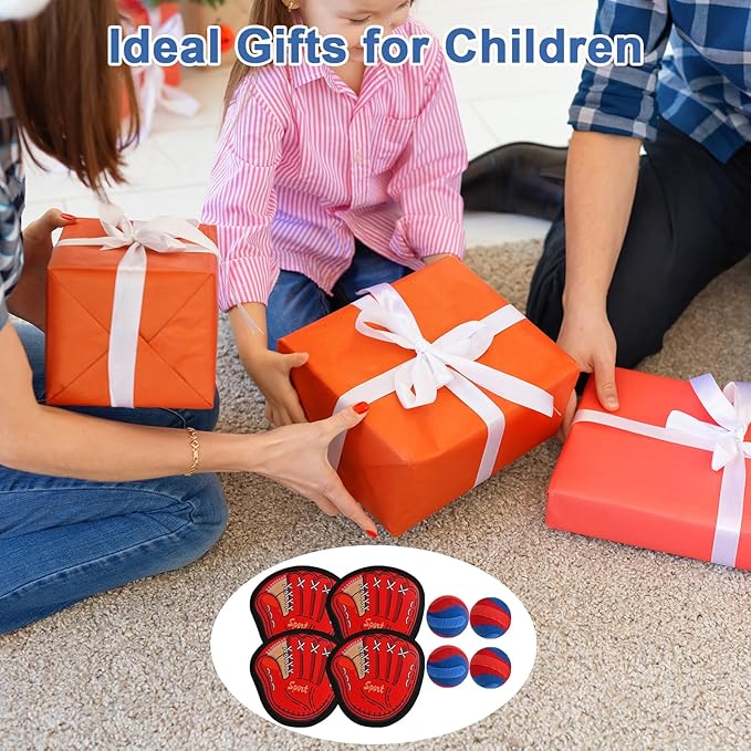 GOLDGE 4pcs Sticky Toss and Catch Ball Game Set for Kids - Baseball Glove Mitt Included - Ideal Sports & Outdoor Toys for Boys Aged 3 to 12