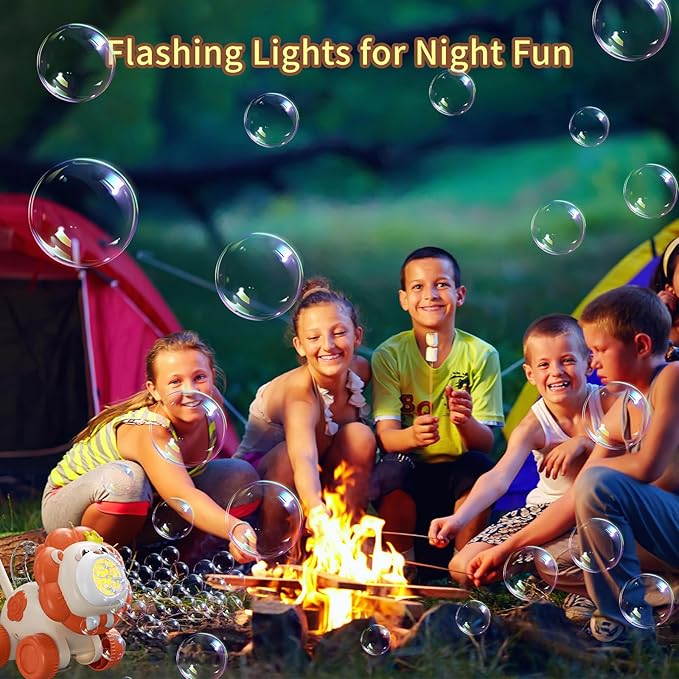 - Flashing Lights & Super Value: The automatic bubble machine has flashing lights, it can be enjoyed day or night. Encourage litter one walking, running, jumping and catching the bubble, stimulate imagination and improve hand-eye coordination, grab kids attention and keep them entertained for hours.