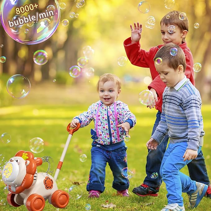 - Two Play Mode for Bubble Fun: This adorable and fun lion bubble lawn mover toys with dual modes——push toy or handheld bubble machine, offer versatility for indoor and outdoor fun. A great toddler toys choices for 3 4 5 year old boys and girls.