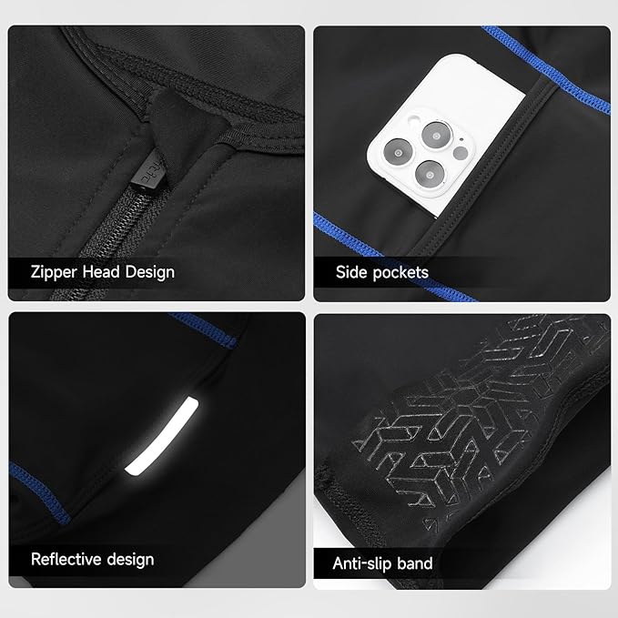 • Features a side mesh pocket for convenient storage of essentials like energy gels or keys, while reflective prints on the back and sides enhance visibility and safety in low-light or nighttime conditions.