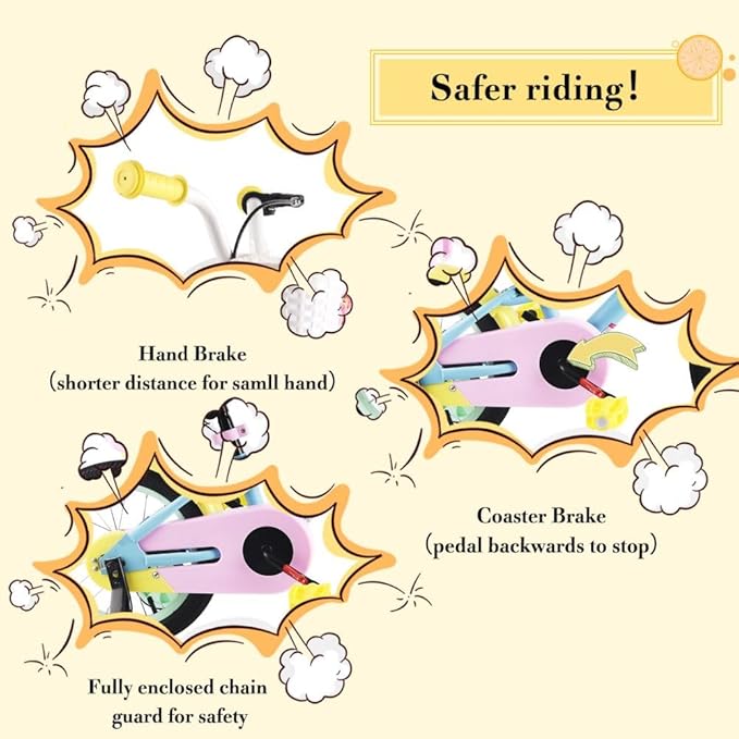 - Safe for Young Rider-Coaster brake is easy to provide phenomenal stopping power when needed, so they can stay in full control, a great option for young rider. Enclosed chain guard, prevent your kids getting hurt. Removable training wheel will keep everything pointing in the right direction till she's ready to balance on her own.
