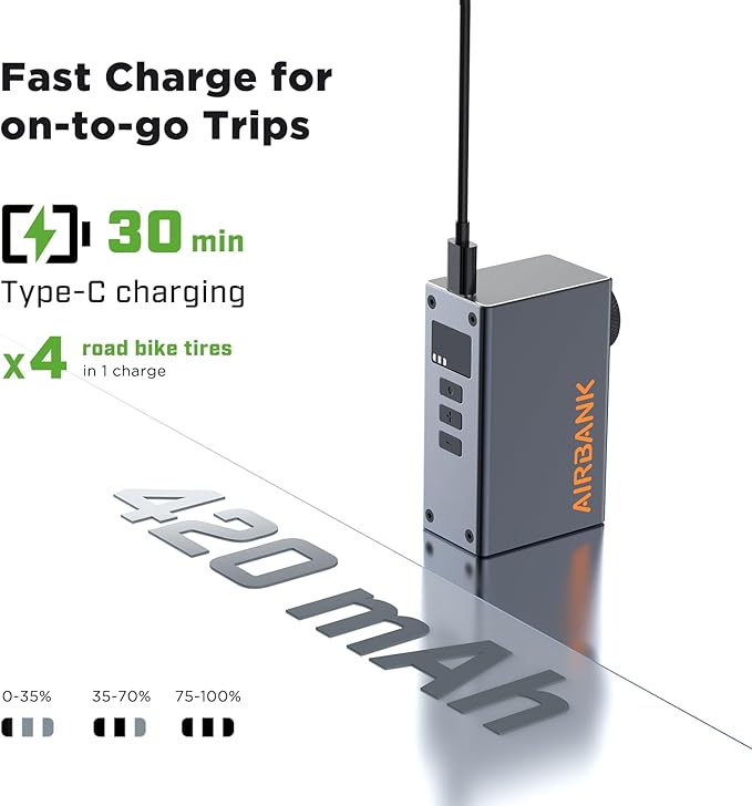 - 【Compact & Portable】 Weighing just 130g (0.3 lbs), the pocket-size electric bike pump is incredibly lightweight and easy to carry. Slip it into your pocket, backpack, or bike saddlebag, making it the perfect companion for cyclists. Plus, it charges fully in just 30 minutes!
