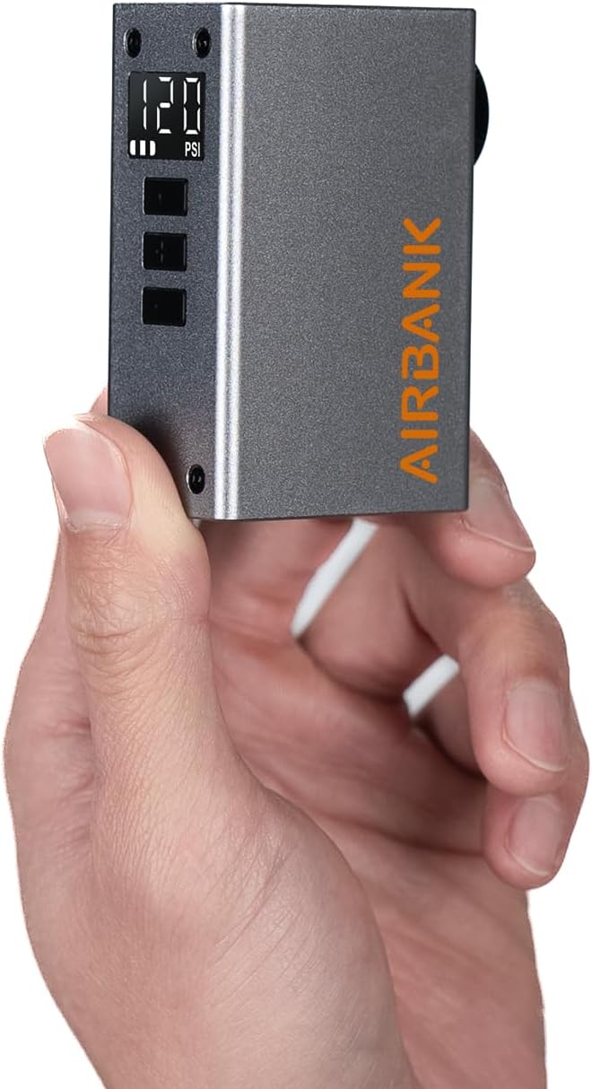 AIRBANK Mini Bike Pump with Gauge, Pocket 2 PRO, 120 PSI Electric Bicycle Pump Portable, Rechargeable Bike Air Pump for Road Bike, Mountain Bike, Sports Balls for Schrader & Presta Valve