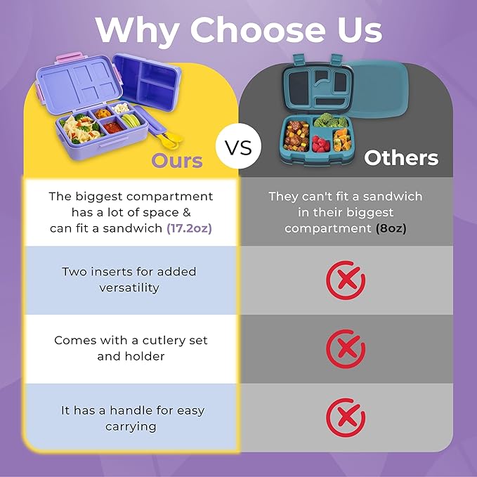 - Leakproof Kids Lunch Box for School: Say goodbye to spills with our bento box for kids. Designed for ages 3-12, this lunch box kids love keeps food separate and mess-free, even between compartments.