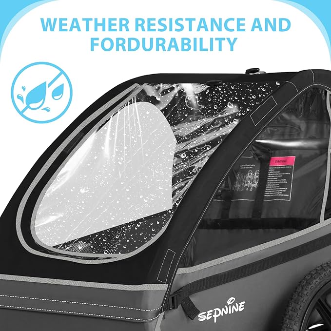 - Large Storage Compartment: The bicycle trailer for kids has a large pcket at the back, providing enough space for toys, bottles, and snacks and anything else you need for a day outside